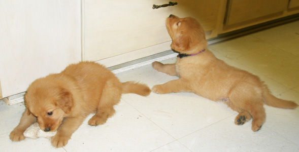 Puppies on January 9,2007 - Tryssie and Merlin exploring the kitchen |