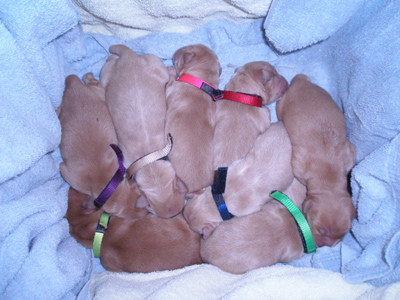 Nessa & pups on November 30, 2006 Merlin is near front in purple collar |